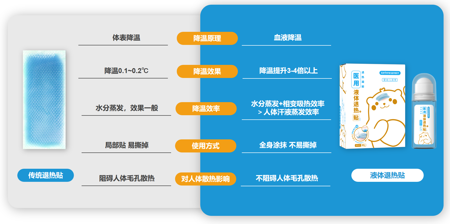 特征对比 | 传统退热贴 | 液体退热贴 |